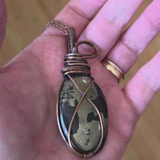 Apache Gold wrapped in copper, comes on a starter copper chain.